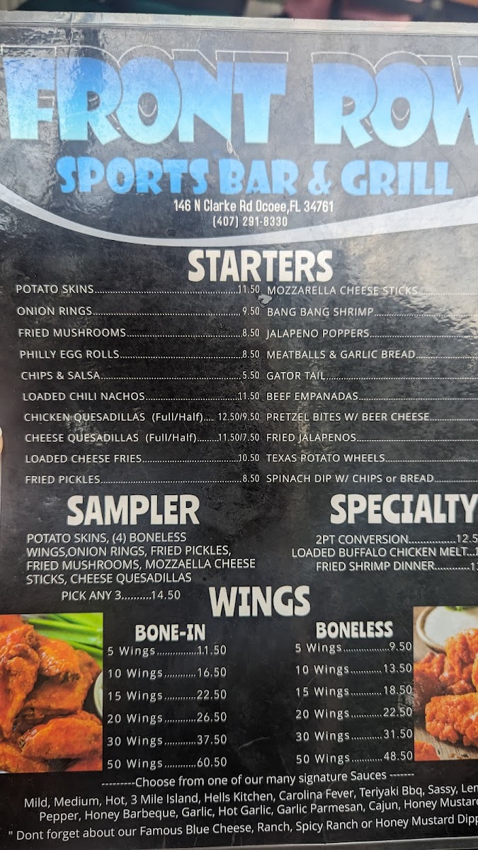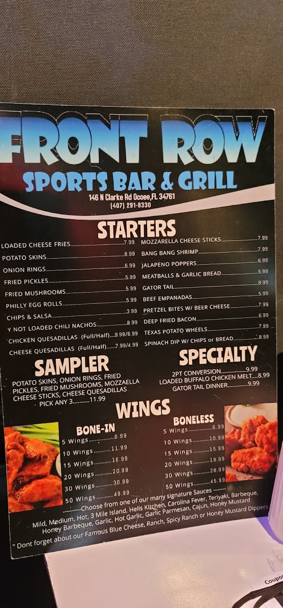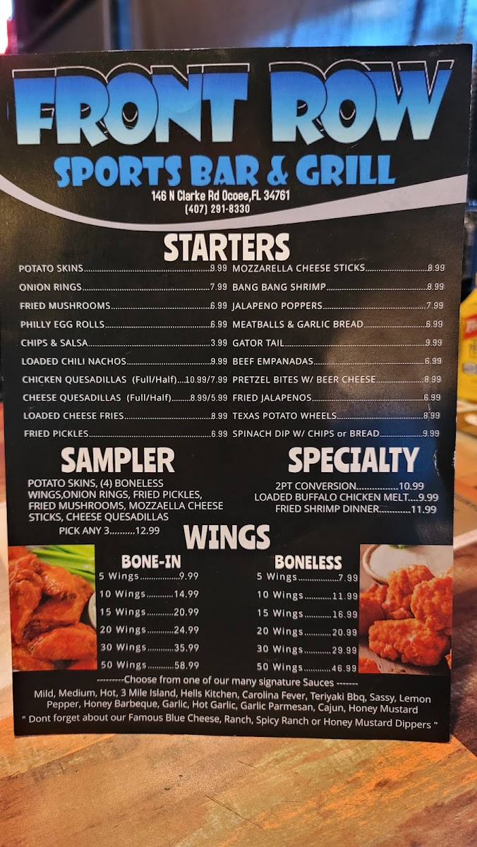 Welcome to Front Row Sports Bar and Grill, a hidden gem located at 146 N Clarke Rd in Ocoee, Florida. This vibrant establishment is not just a bar; it’s a community hub where sports, great food, and live entertainment intersect. Whether you’re looking to catch the latest game, enjoy a night of karaoke, or savor delicious eats, Front Row has something for everyone.